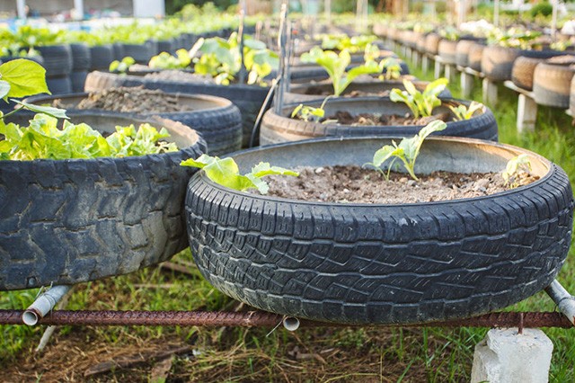 استخدام إطارات السيارات كأحواض في الزراعة