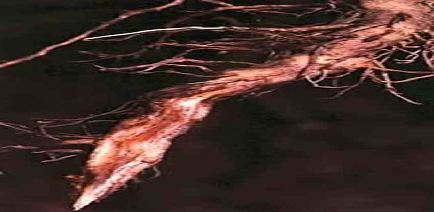 اصابة الطماطم بعفن الجذور الفيتوفثوري اصابة الطماطم بعفن الجذور الفيتوفثوري https://www.arabsharing.com/do.php?img=227538 الاعراض المرضية Characteristic symptoms أعراض الإصابة تظهر أعراض الإصابة علي السيقان أعلى أو تحت مستوي سطح التربة , حيث تتكون بقع بنية اللون تكبر وتتعمق حتى تحلق الساق ويظهر تلون بني داخلي في الحزم الوعائية للسيقان يمتد لمسافة تزيد قليلاً عن موضع البقعة من حديها العلوي والسفلي وفي النهاية يتعفن ساق وجذر النبات المصاب , ويذبل النبات , ثم يموت كما تحدث هذه الفطريات ذبولاً طرياً في طور البادرة |