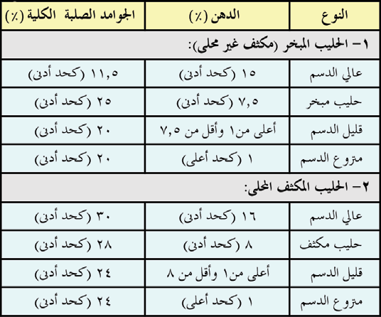 بالصور جداول منتجات الالبان ومشتقاتهاالقيمة الغذائية ودرجه الحرارة
